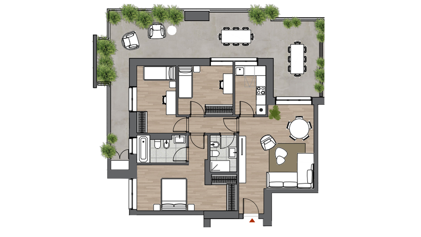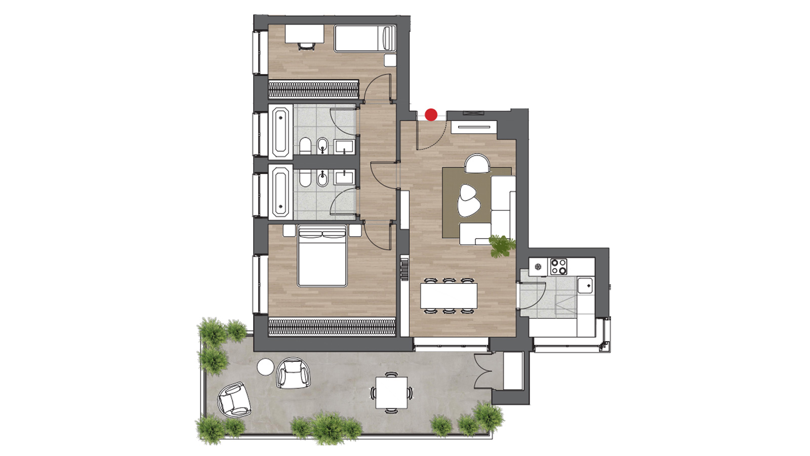 Residenze Vesta offre bilocali, trilocali, quadrilocali e plurilocali ampi e confortevoli, con spazi luminosi e ben distribuiti. Alcune unità dispongono di giardini privati, ideali per il relax all’aperto. Qualità, funzionalità e benessere per uno stile di vita su misura